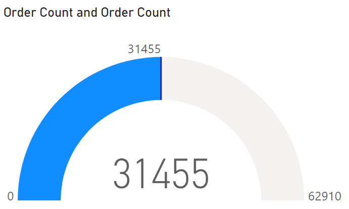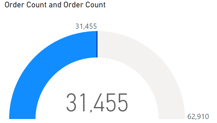 Reports with AS data sources can provide dynamic format strings, or cell-level formatting, to customize the formatting of their data. Reports with calculation groups will also convert regular format strings into dynamic format strings. We’ve gotten feedback over time that these dynamic format strings were applying inconsistently across a number of different visuals, including the gauge visual and some cases of categorical bar charts. We know that this inconsistency has affected decisions you’ve made around report design, so we’re highlighting here that after the numerous changes we made last month, categorical visuals should all support dynamic format strings. Here’s an example of how a gauge visual might display a value string with commas to separate thousands before the changes:
