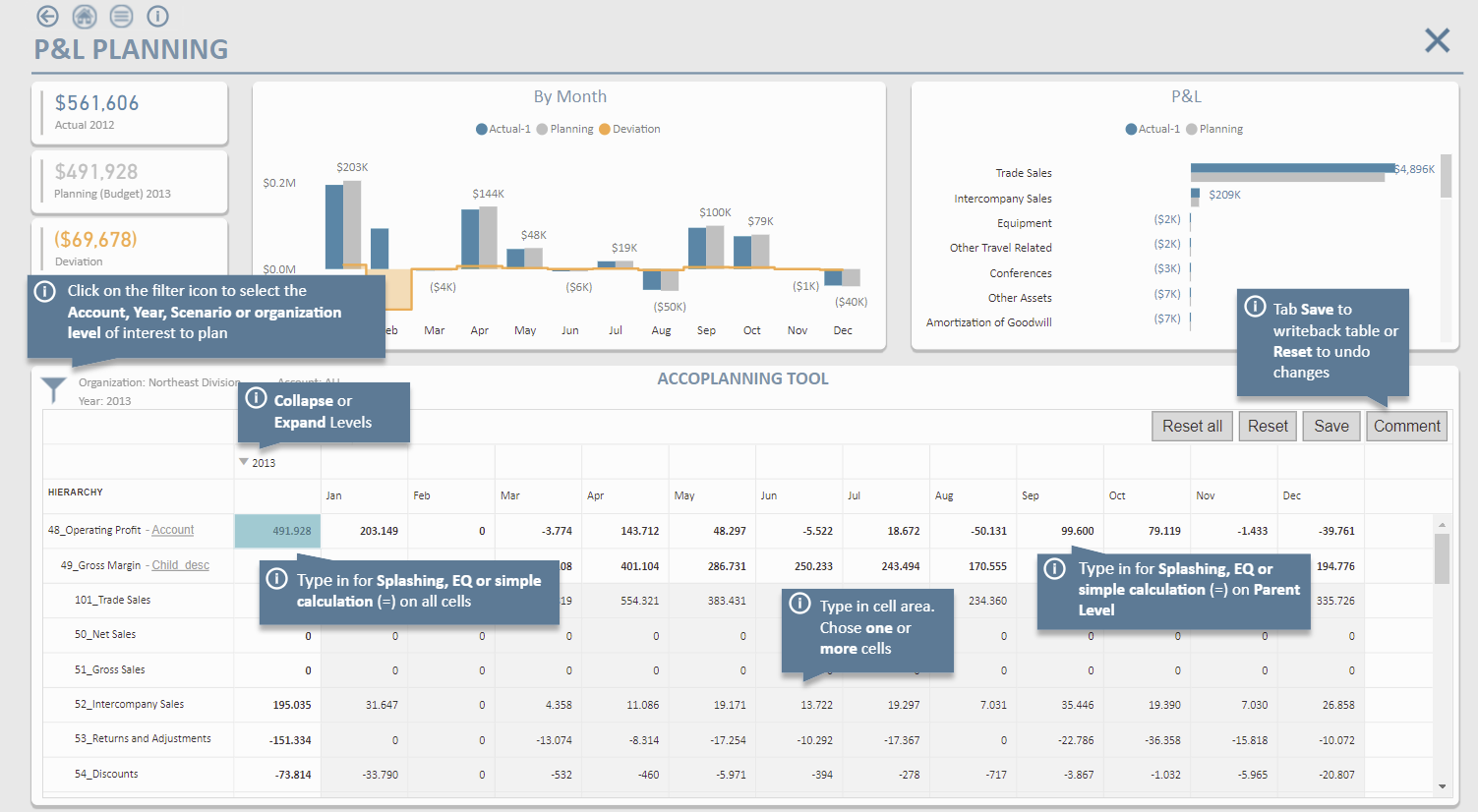 With this visual you can now writeback numbers, text and dates on any existing or new PowerBI model. Check out the new advanced features like splashing numbers from an aggerated level to all leaf levels and even splash the numbers relative according to another measurers in you model.