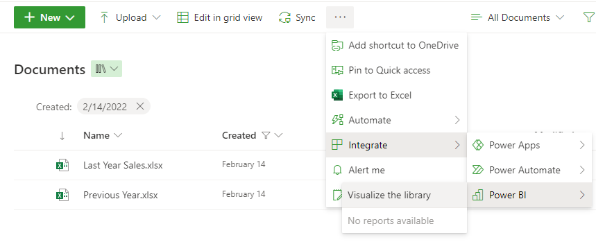 Previously, we launched an integration in SharePoint lists that let you, with just a few clicks, automatically create a Power BI report off list data. Now, that same capability is available on SharePoint document libraries. This will let you easily explore your file metadata, such as how frequently files are modified, who makes the most modifications, etc.
