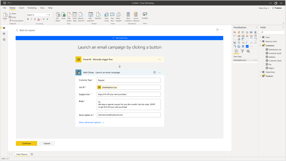 - Power Automate visual (sneak peek)3 – kick off flows directly from a Power BI report using the new Power automate visual leveraging the context of your data.