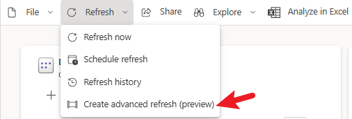 You can access these templates by selecting ‘Create advanced refresh’ from the refresh dropdown on the semantic model details page in your Microsoft Fabric workspace.