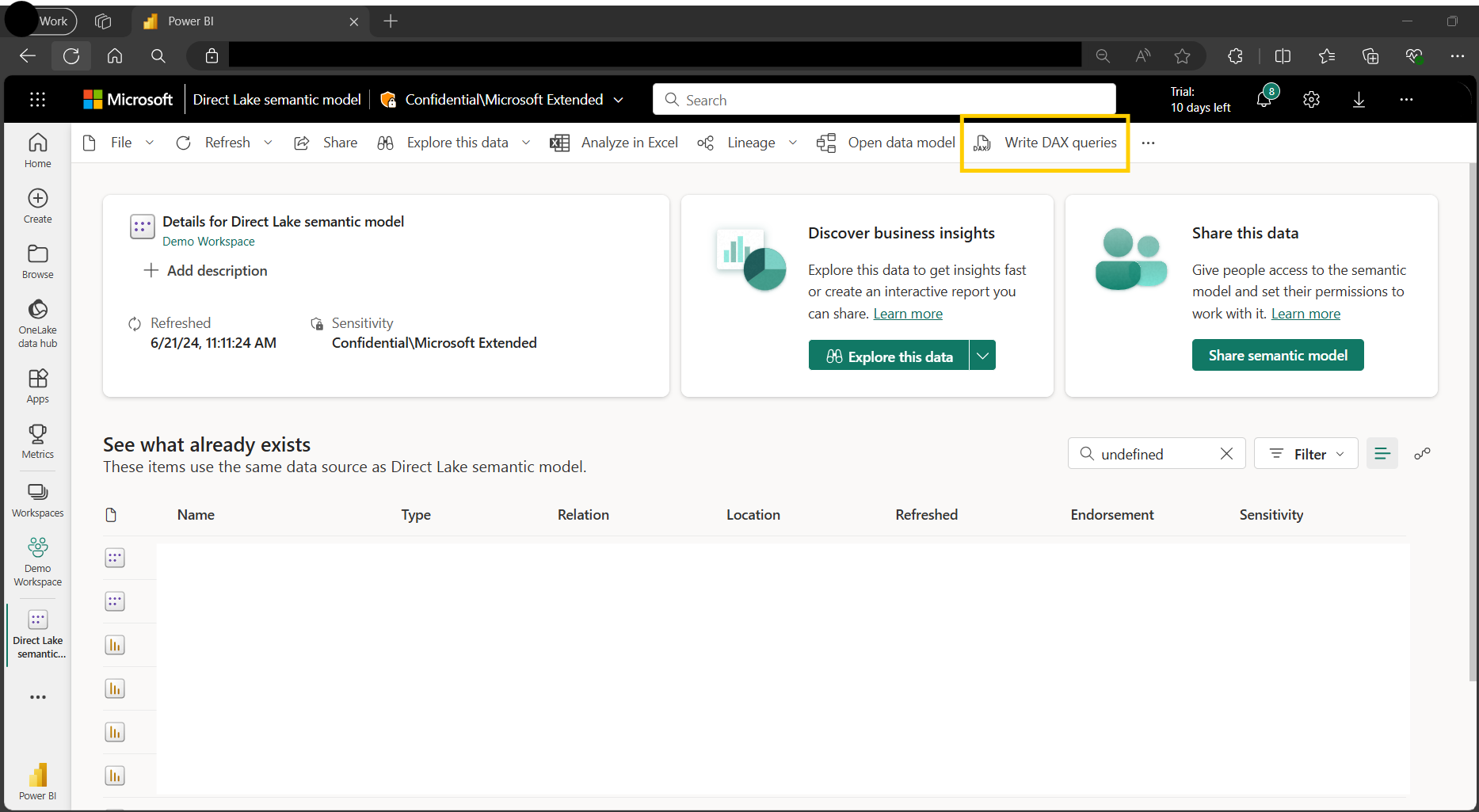 Microsoft Fabric customers already taking advantage of the new Direct Lake mode for Power BI now have the new measure editing capabilities of DAX query view available them through this web experience.