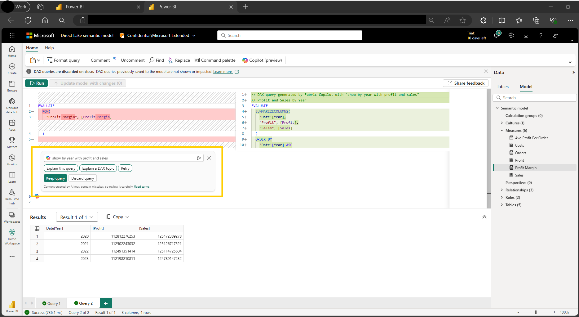 And the Fabric Copilot to help write and explain DAX queries is also available in DAX query view in the web.