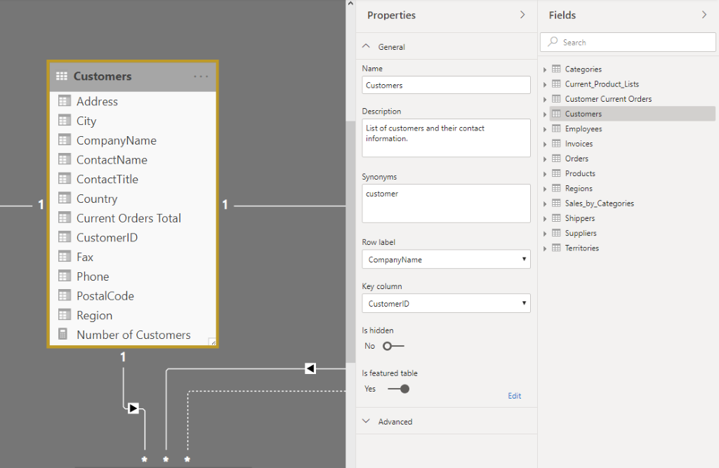 In the model view of Desktop, you can then pick the table that you want to be a featured table to use in other products like Excel.