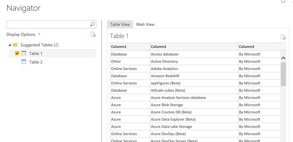 Automatically recognized tables via Web by example will save you time; instead of needing to go through the Extract tables using examples experience, users can pick from the automatically recognized tables on a given webpage. However, users can also continue to go into the Extract tables using examples experience to select different data as needed.