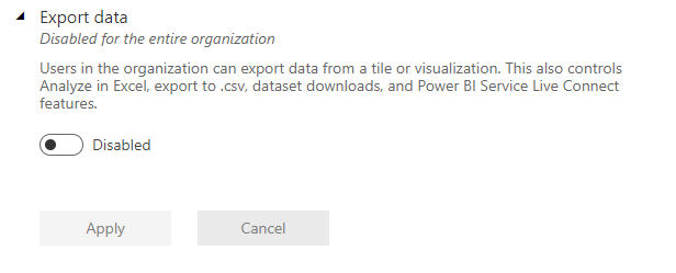 Note that if the Export data tenant setting is set to Disabled, connections to featured tables are also disabled.