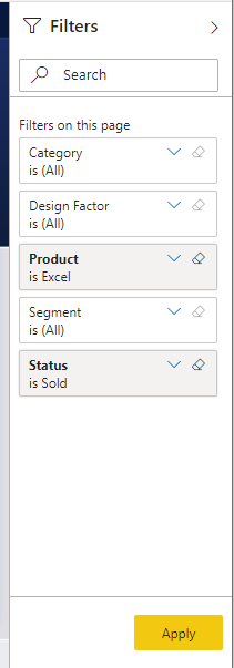 Now, we’re adding a new option for you to add a single apply button to the filter pane, essentially, allowing you and your end-users to apply all filter modifications at once. This capability will be useful if you want to defer when to apply filter changes, so you only have to wait once after you are ready to apply any filter changes to the report or visuals.